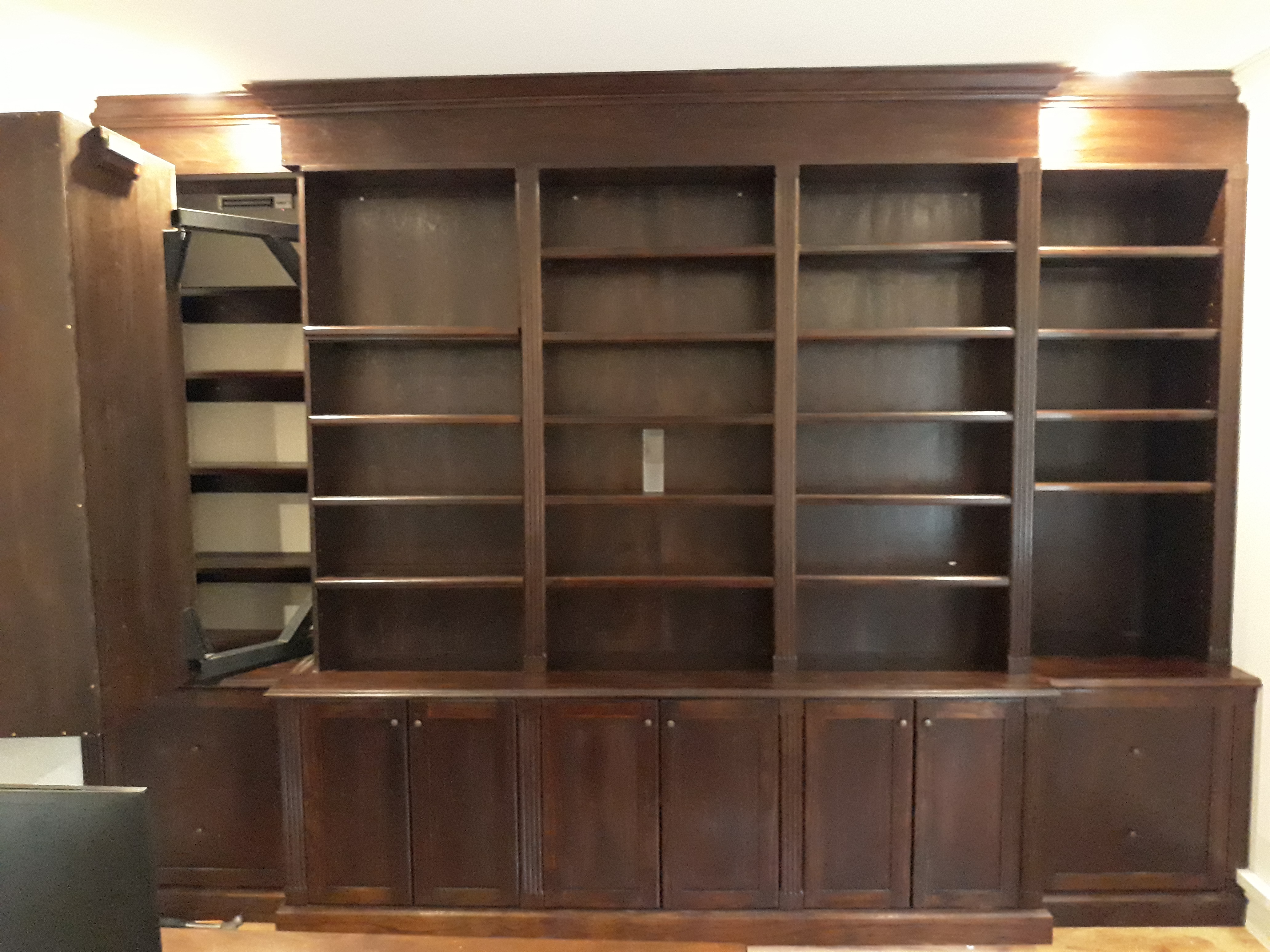 Secret doors in open and closed positions, murphy doors, secret hiding-places